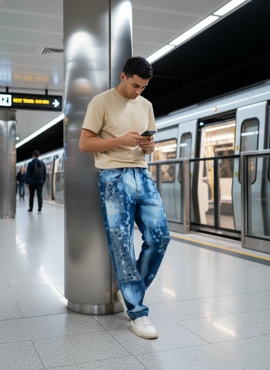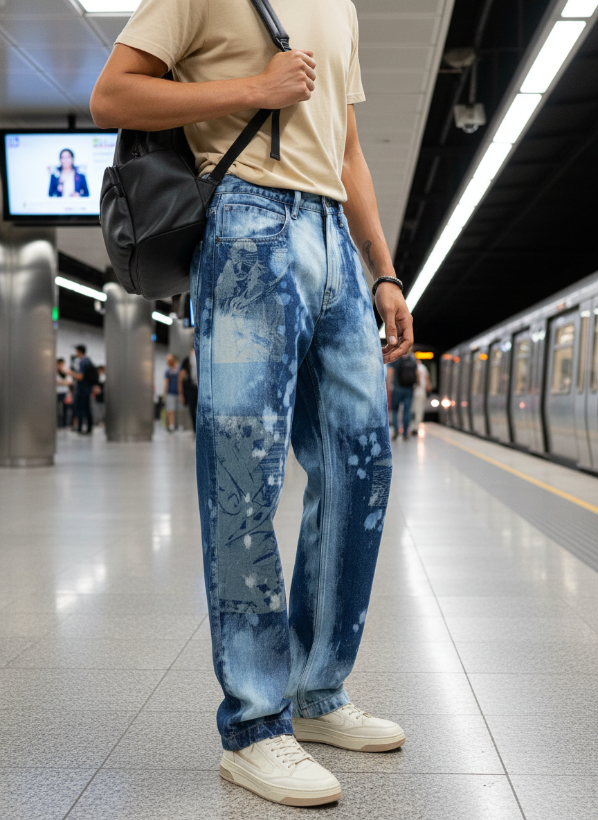 Step out in style with this Bleach Collage baggy fit Denim! Made with 100% Cotton for optimal comfort, these jeans look and feel as good as they look! Show your style and unleash your inner fashionista with these B5ive jeans!