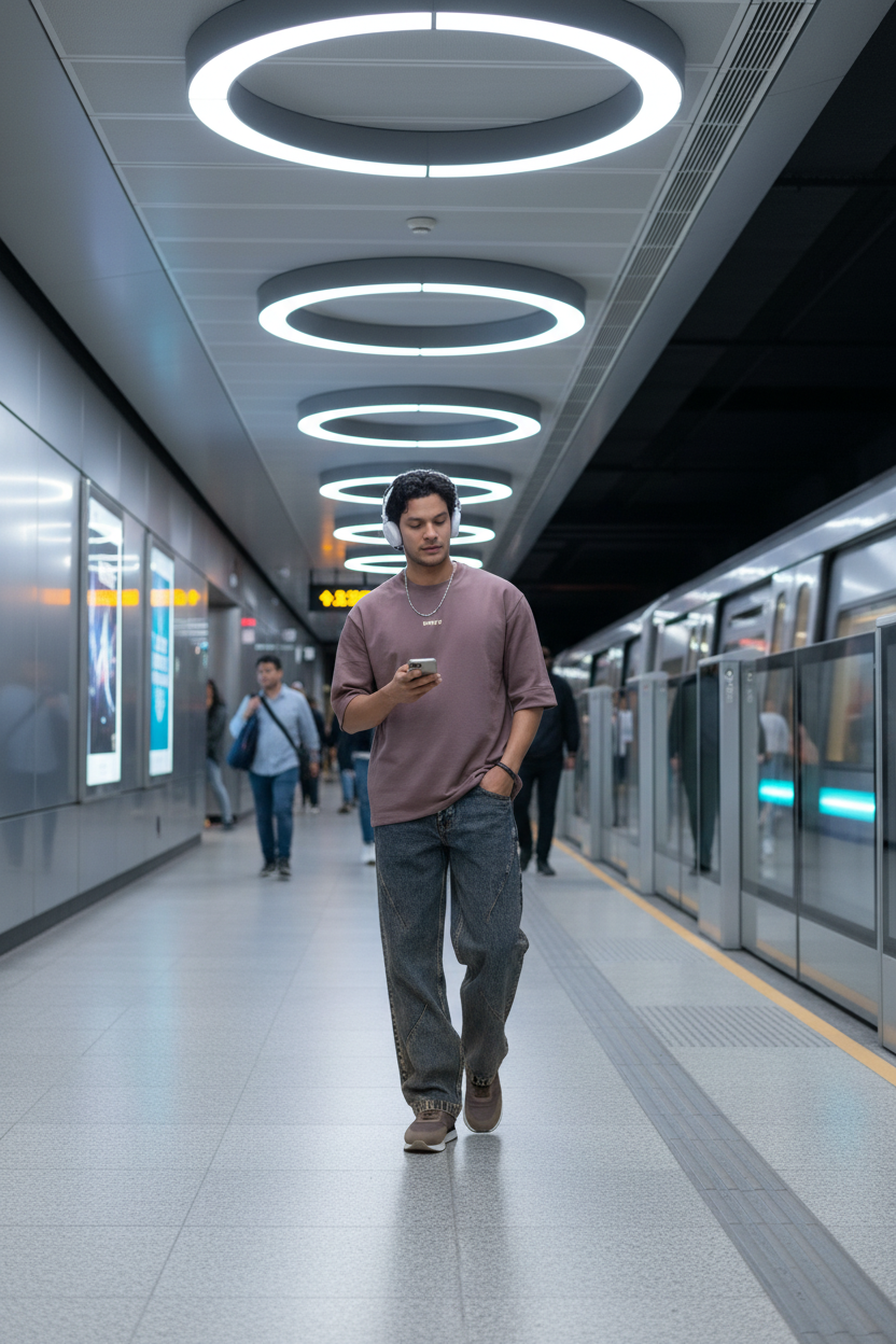 These jeans feature a bold Rustic Wash—a unique finish with deep, dark tones and an earthy, brown-tinted fade that provides a pre-worn, vintage aesthetic. The design is sharpened by distinctive angular stitching and paneling at the thigh and knee, which adds structural interest and a subtle moto-inspired edge. The comfortable loose fit ensures effortless style and mobility. Crafted from durable 100% cotton, these jeans are the perfect foundation for a contemporary, utility-focused outfit. Pair these distinctive Jeans with a neutral B5IVE overshirt or a fitted black tee to complete the sharp look.