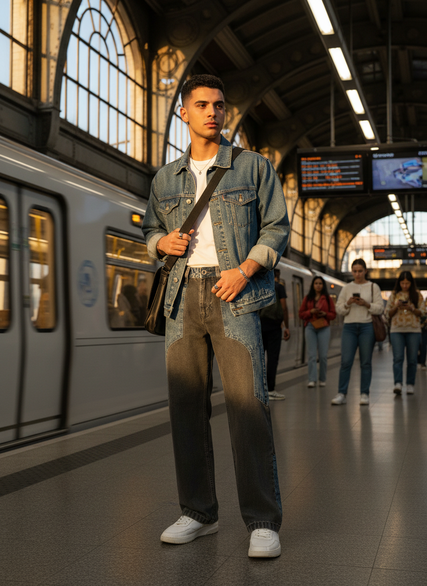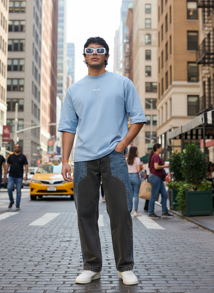Introducing the Split Panel Dual Wash Loose Fit Denim, a high-impact, statement piece from the B5IVE collection.