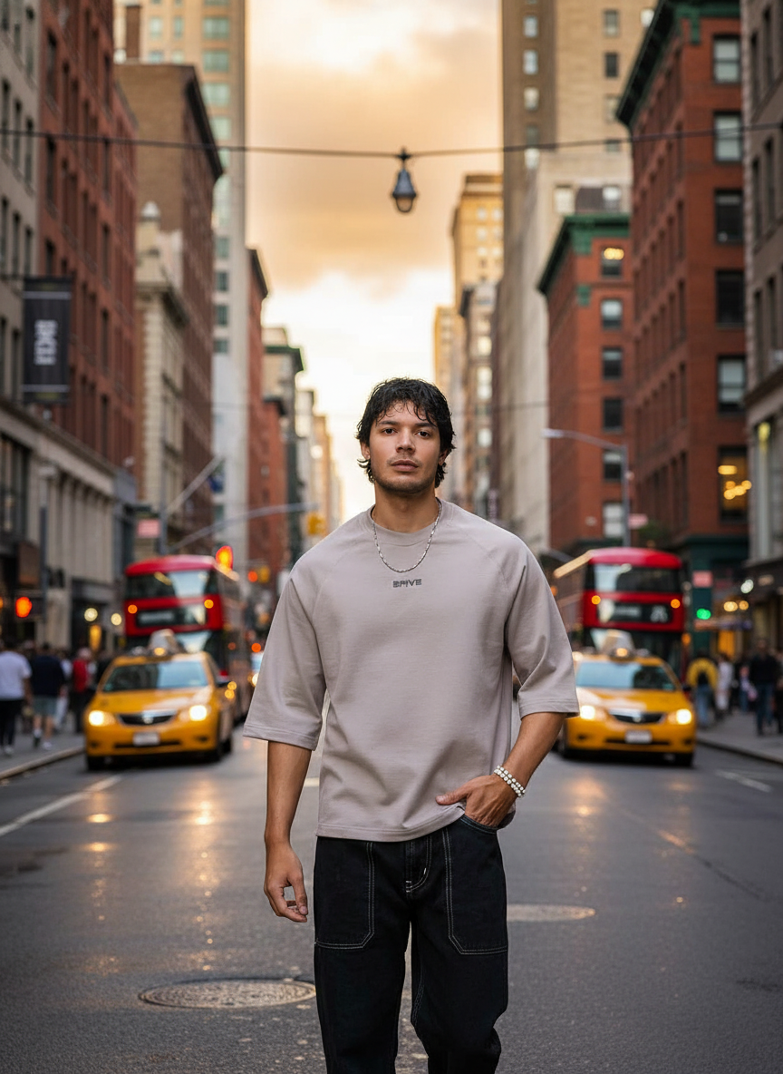 This isn't your basic tee—it's a statement. With a perfectly oversized, boxy silhouette and unique 3/4 raglan sleeves, it hits all the right streetwear notes. The soft, breathable cotton and distinct Stone Gray/Taupe wash make it a versatile piece that feels as good as it looks.